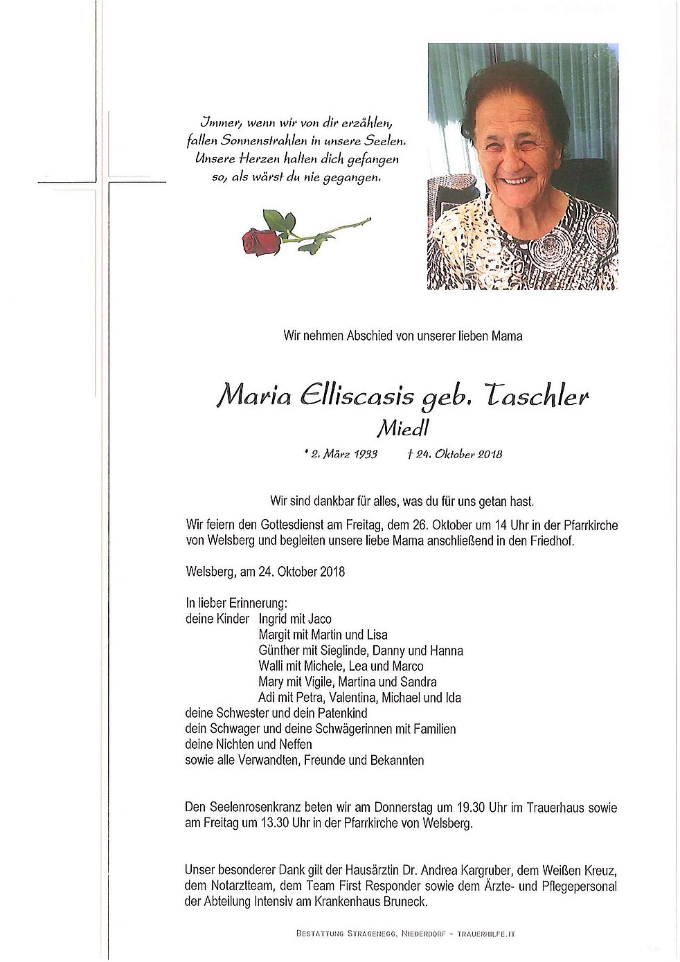 Wir feiern den Gottesdienst am Freitag, dem 26. Oktober um 14 Uhr in der Pfarrkirche von Welsberg und begleiten unsere liebe Mama anschließend in den Friedhof.