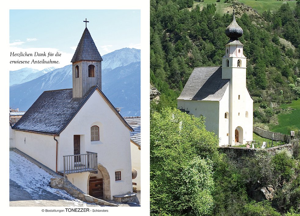Ein besonderer Dank gilt der Hausärztin Frau Dr. Monica Scherer und dem gesamten Pflege-personal des Altenheimes von Laas für die fürsorgliche Betreuung.