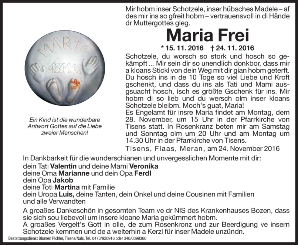 Es Engelamt für insre Maria findet am Montag, den 28.11.2016 um 15.00 Uhr in