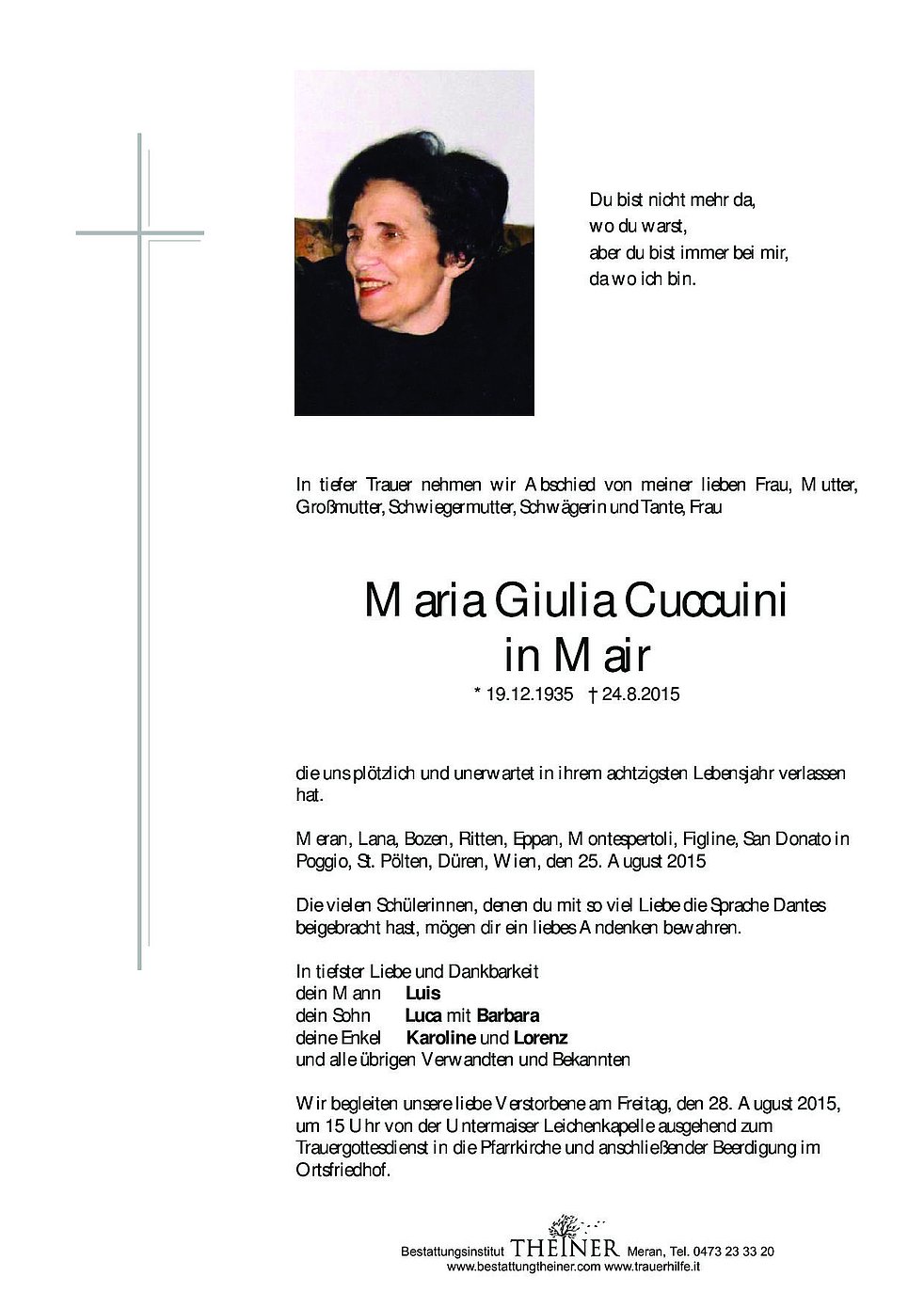 Wir begleiten unsere liebe Verstorbene am Freitag, den 28. August 2015,