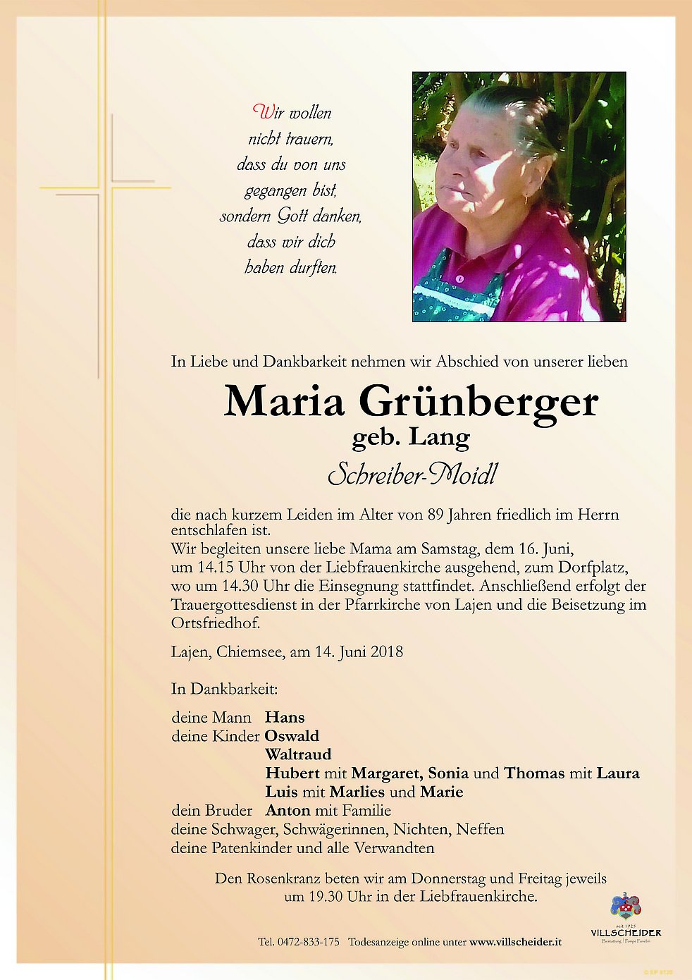 wo um 14.30 Uhr die Einsegnung stattfindet. Anschließend erfolgt der Trauergottesdienst in der Pfarrkirche von Lajen und die Beisetzung im Ortsfriedhof.