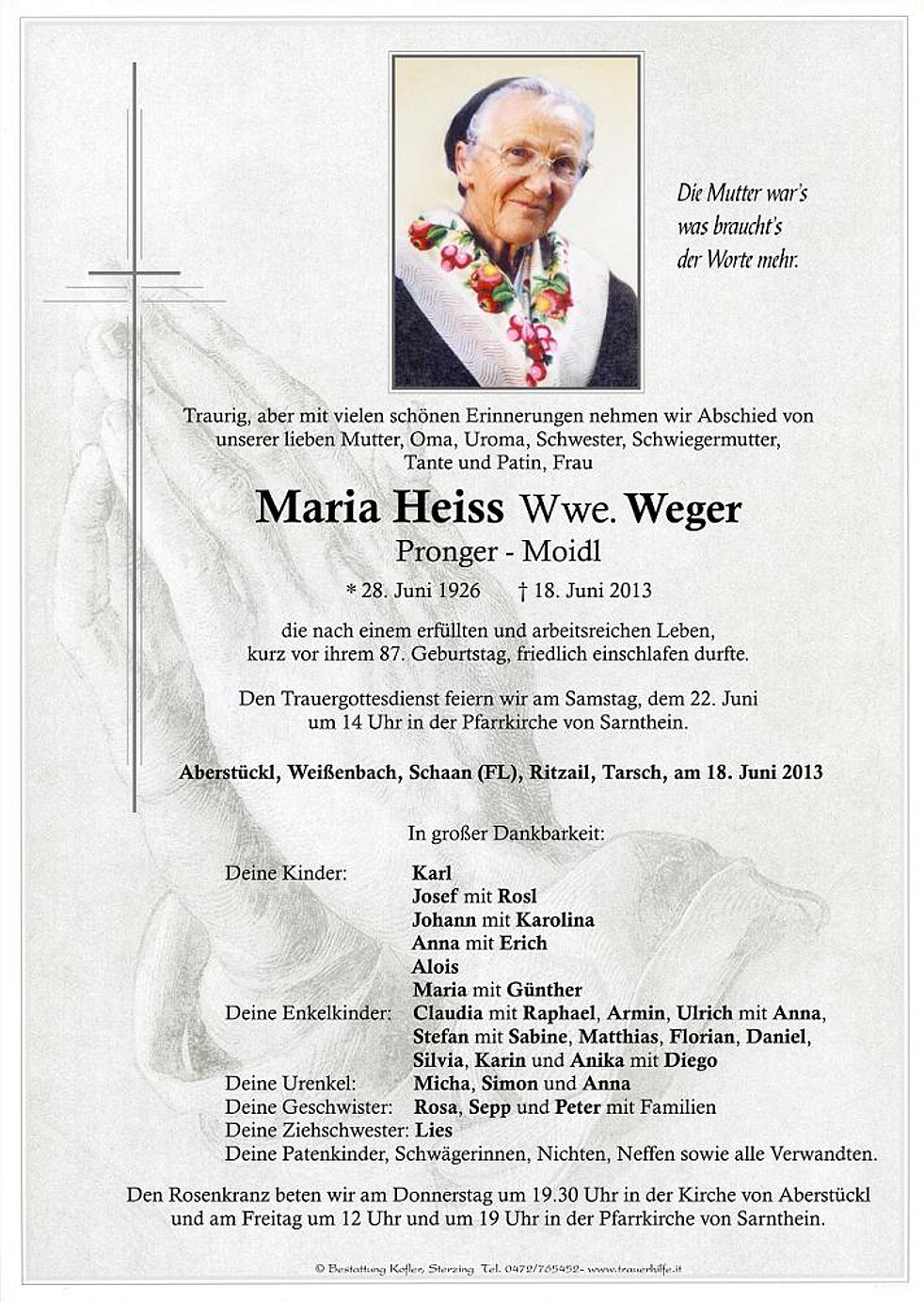 Den Trauergottesdienst feiern wir am Samstag, dem 22. Juni