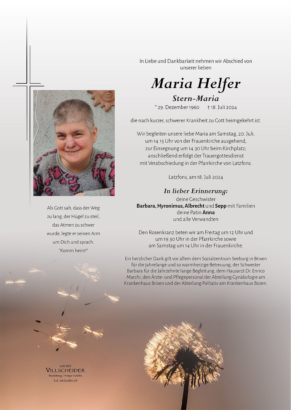 Iatz bische widor mit deiner Mama vereint. Mochs guat Maria, wer di olm in guater Erinnerung koltn.