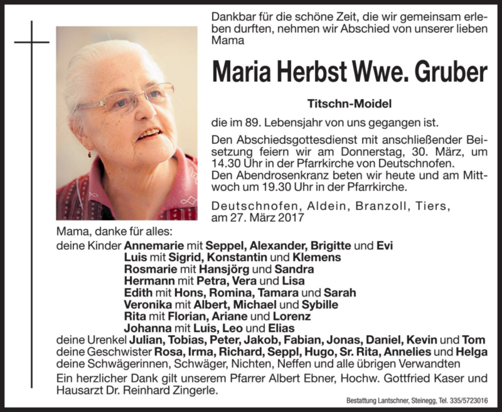 am Donnerstag, 30. März, um 14.30 Uhr in der Pfarrkirche von Deutschnofen.