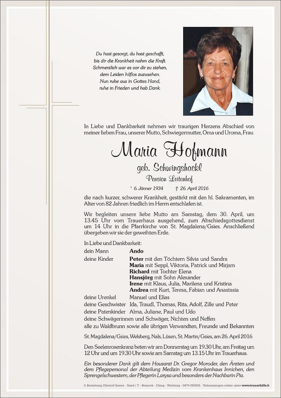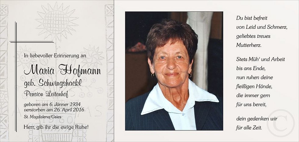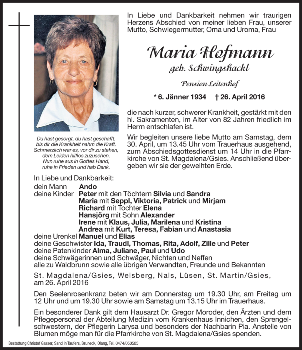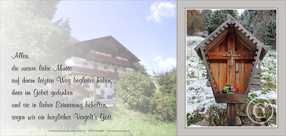 um 14 Uhr in die Pfarrkirche von St. Magdalena/Gsies. Anschließend übergeben wir sie der geweihten Erde.