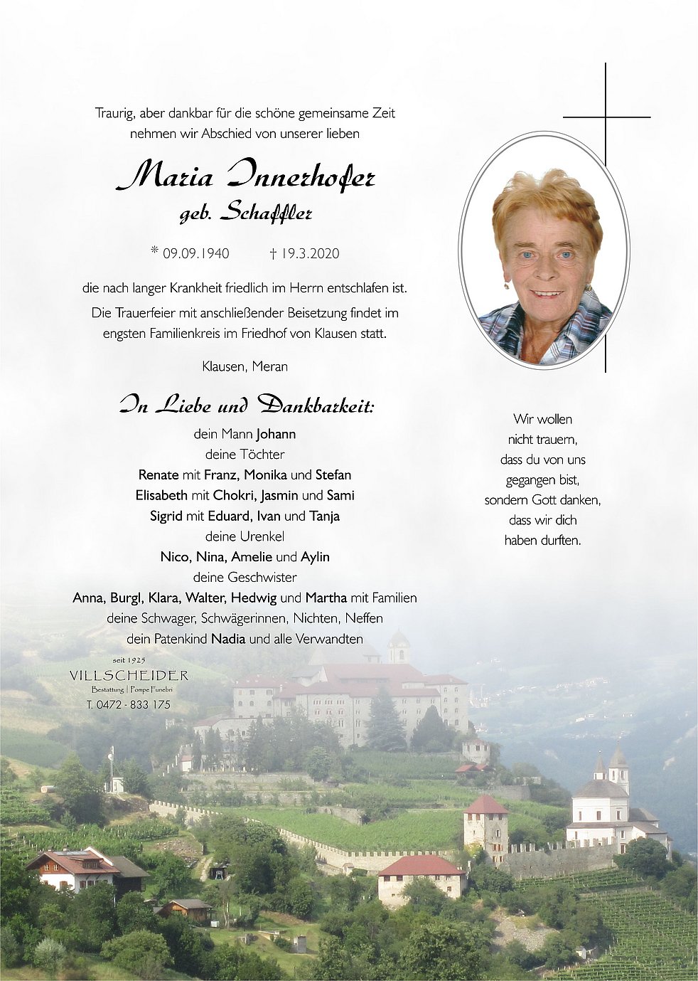 Ist auch alles vergänglich auf dieser Erde, die Erinnerung an einen lieben Menschen ist unsterblich und gibt uns Trost.
