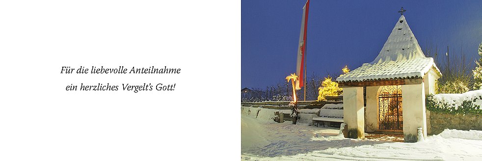 Allen, die am Rosenkranz und an der Trauerfeier teilnehmen, im Voraus ein herzliches Vergelt´s Gott.