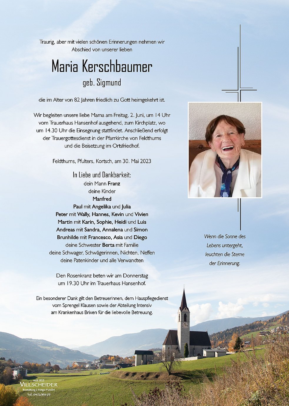 Begräbnisgottesdienst: 02.06. - 14:30 Uhr Feldthurns