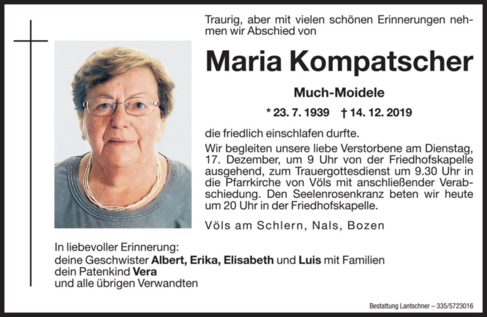 Wir begleiten unsere liebe Verstorbene am Dienstag, 17. Dezember um 9 Uhr