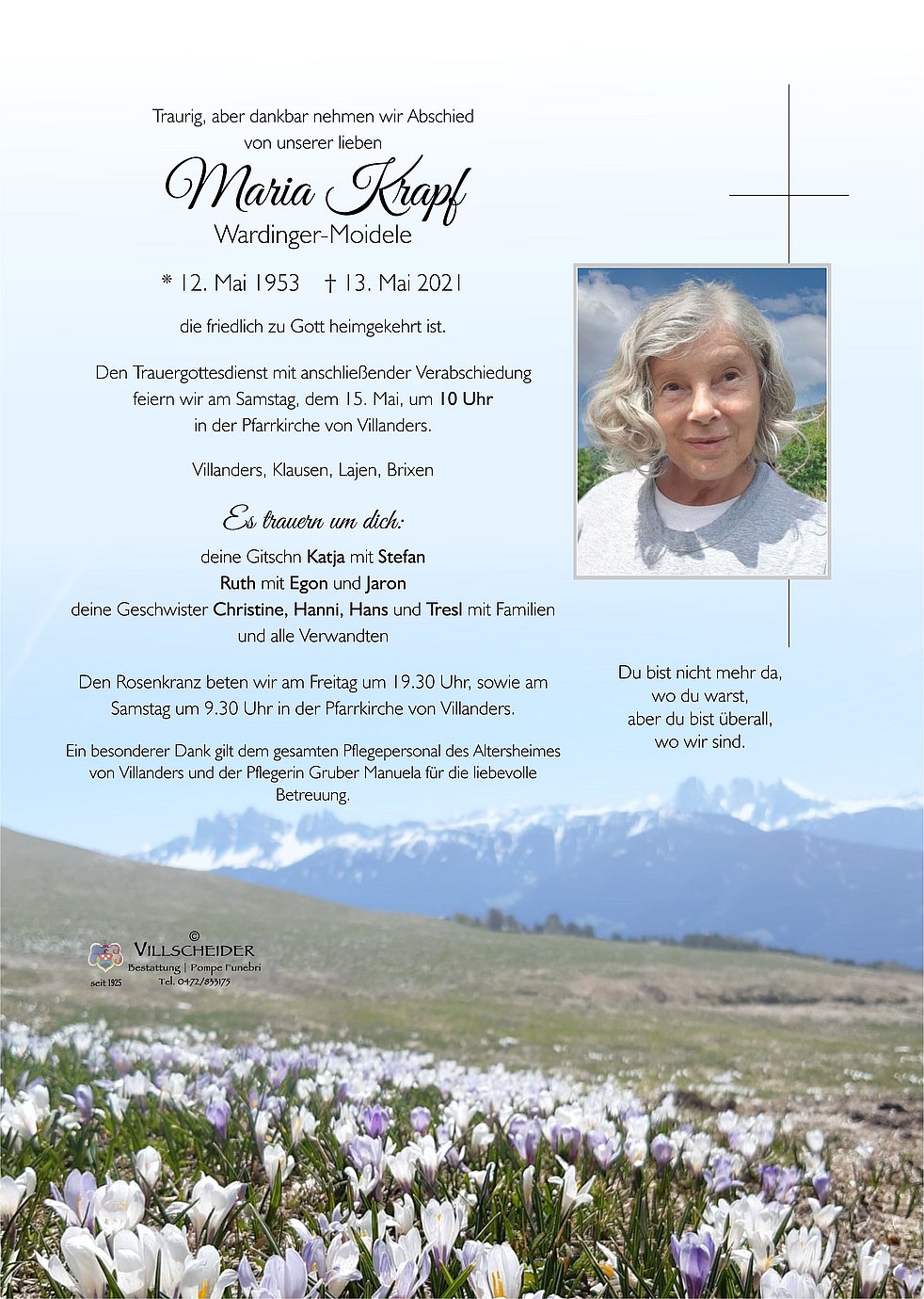 Liebe kate,liebe trauerfamilie.es tuat mir volle load,dass es enkre mama iaz schun gian lossn miast.denk olm drun,dass sies guat hot wo a olm sie iaz isch!!i denk an enk...