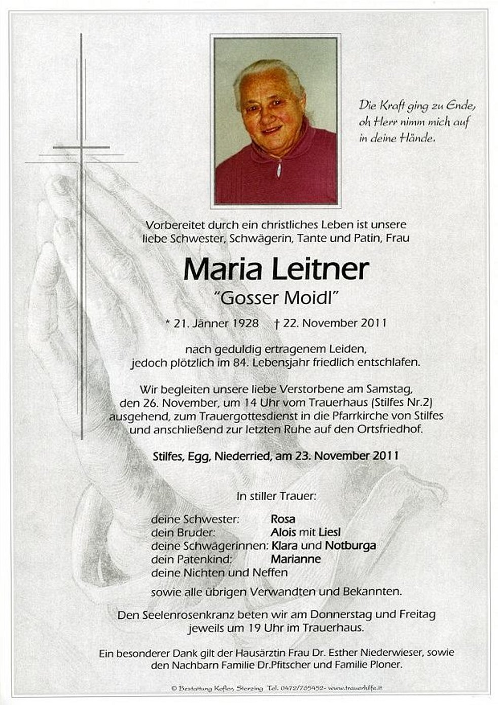 Wir begleiten unsere liebe Verstorbene am Samstag, den 26. November, um 14 Uhr