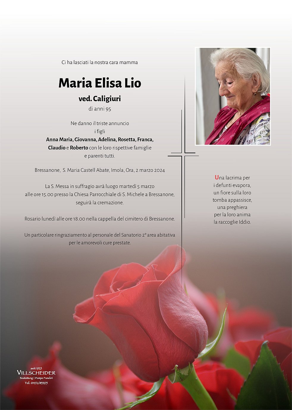 Condividiamo la vostra profonda tristezza per la perdita della vostra mamma Maria e siamo uniti nel suo ricordo.