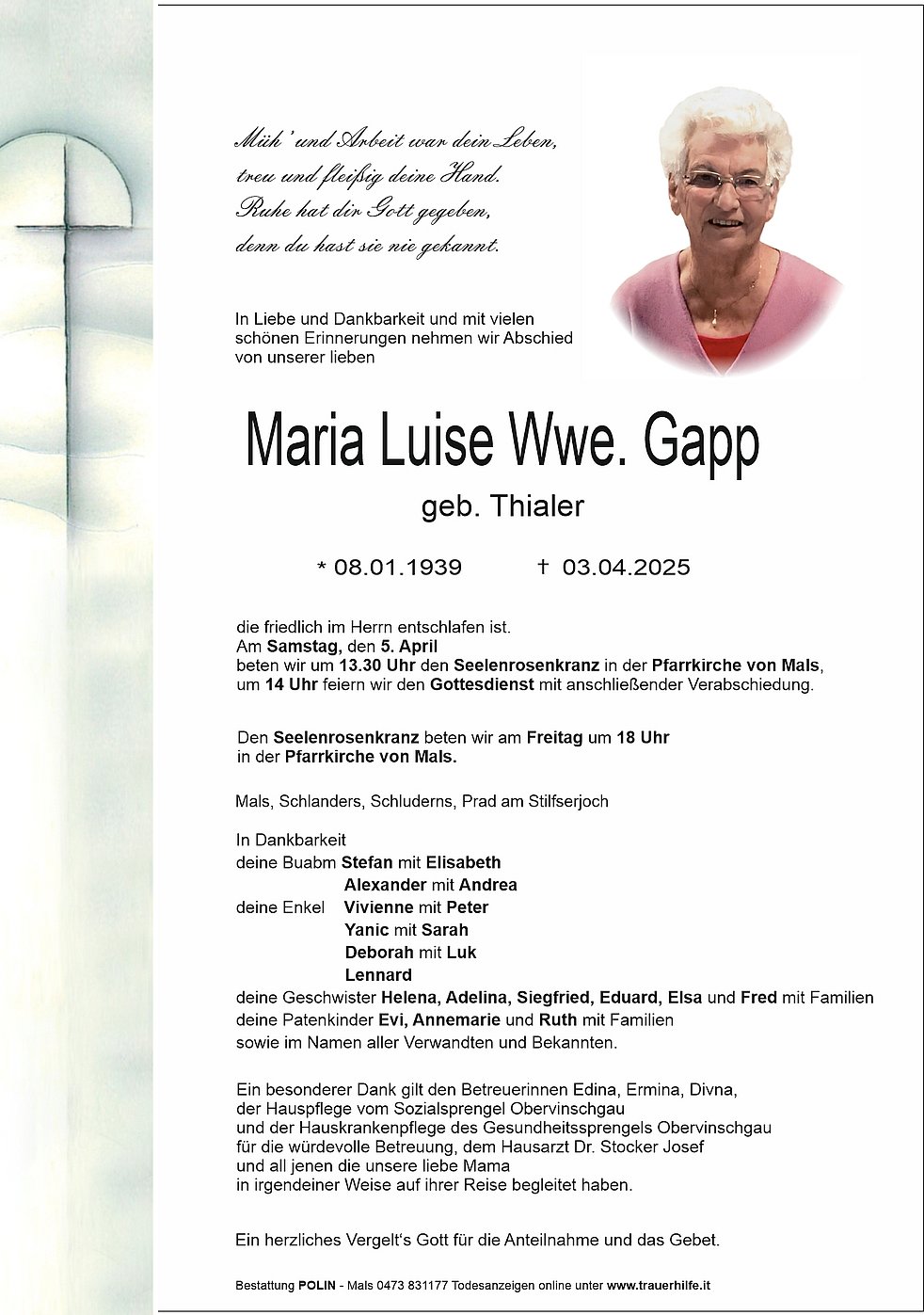 beten wir um 13.30 Uhr den Seelenrosenkranz in der Pfarrkirche von Mals,