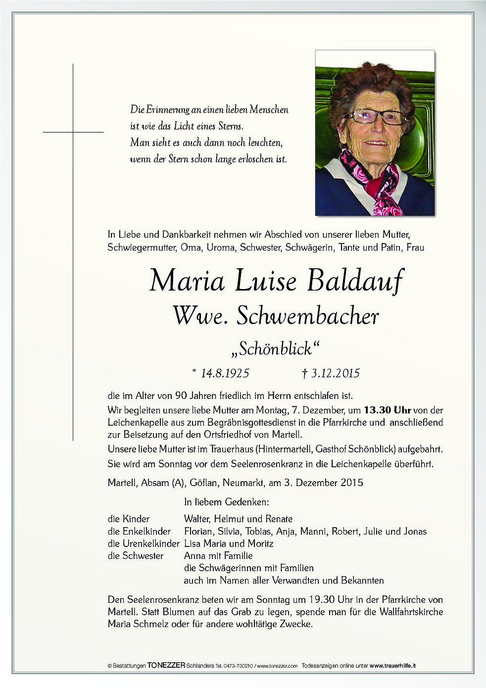 Wir begleiten unsere liebe Mutter am Montag, 7. Dezember, um 13.30 Uhr von der Leichenkapelle aus zum Begräbnisgottesdienst in die Pfarrkirche und anschließend zur Beisetzung auf den Ortsfriedhof von Martell.