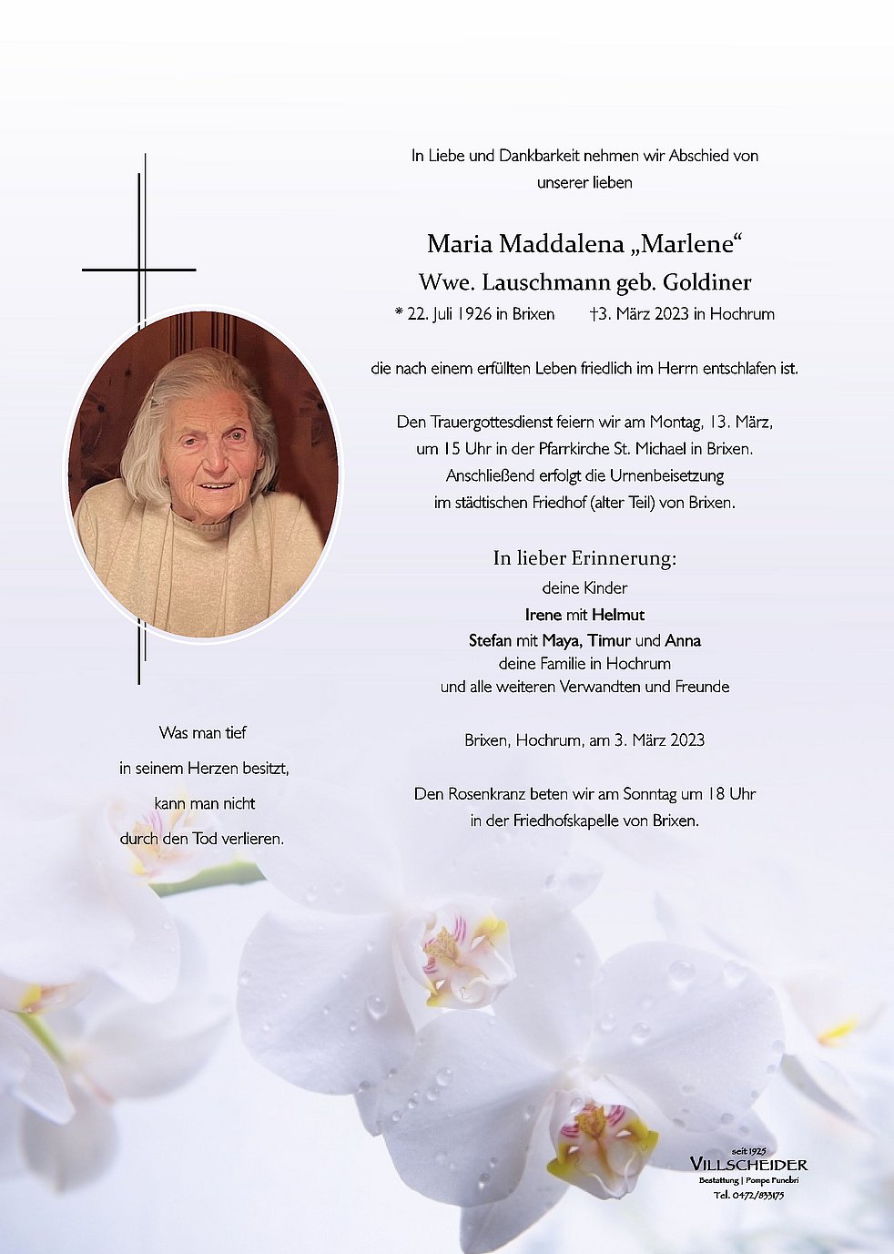 Trauerfeier: 13.03. - 15:00 Uhr Brixen
