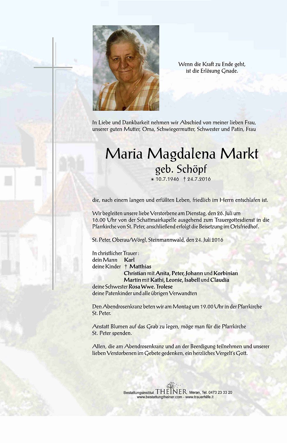 Pfarrkirche von St. Peter, anschließend erfolgt die Beisetzung im Ortsfriedhof.