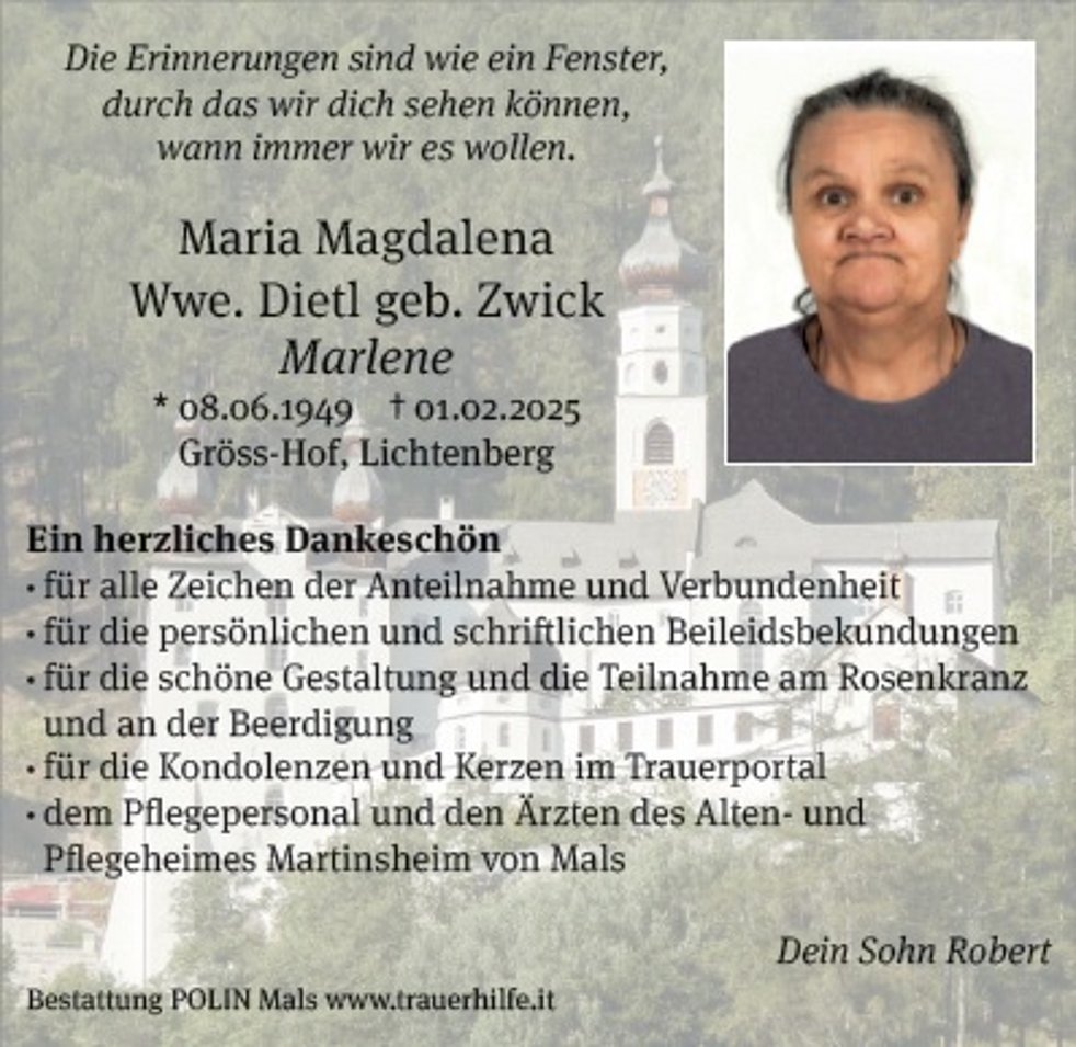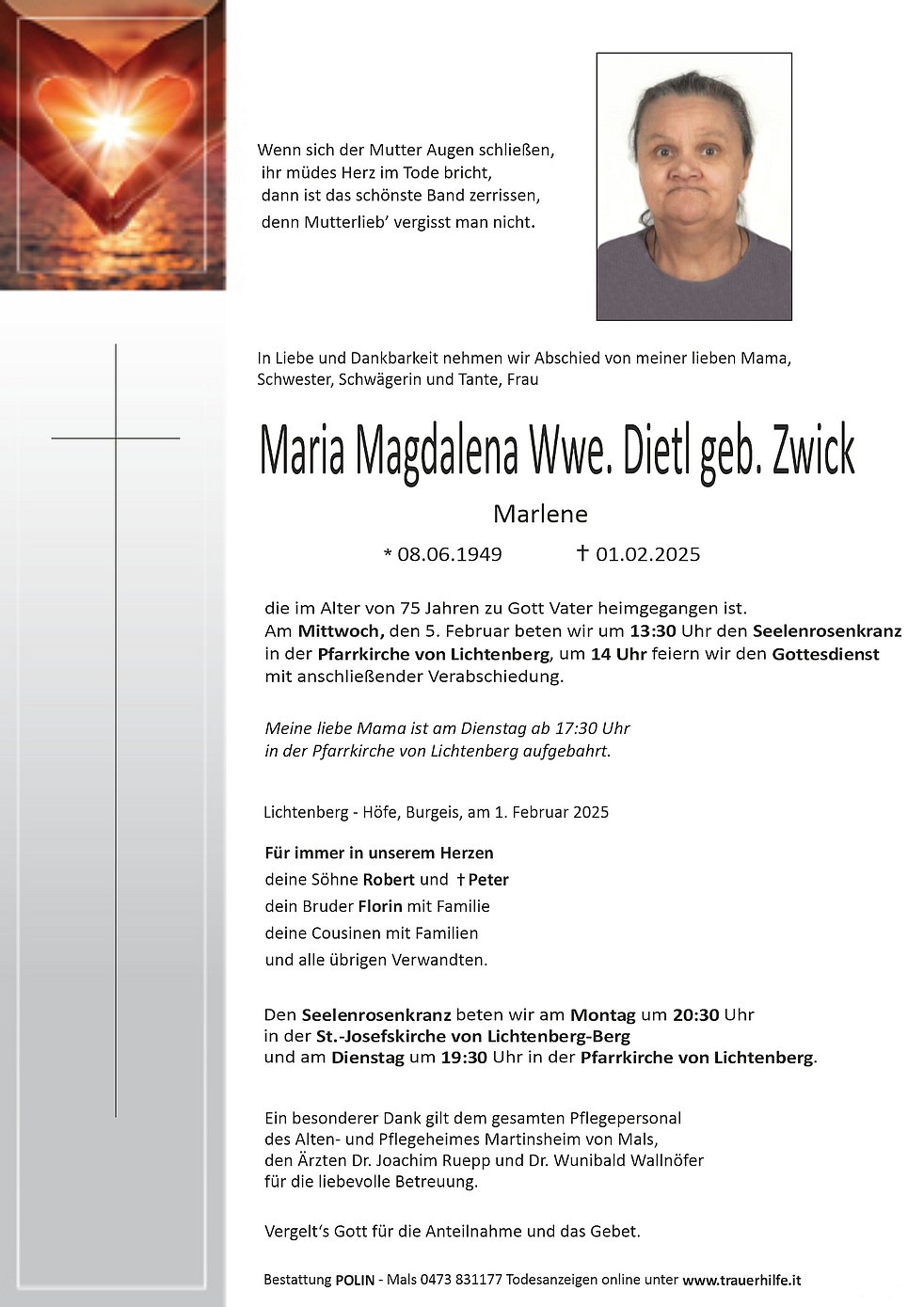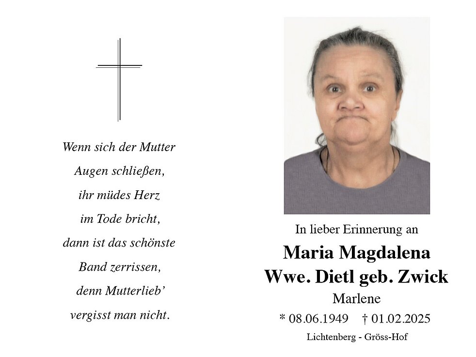 Maria Magdalena Wwe. Dietl geb. Zwick
