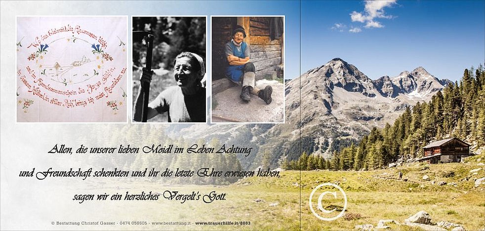 Ein besonderer Dank gilt dem gesamten Personal vom 3. Wohnbereich und von der Pflegeoase des Wohn- und Pflegeheimes Bruneck für die liebevolle Betreuung und Begleitung.