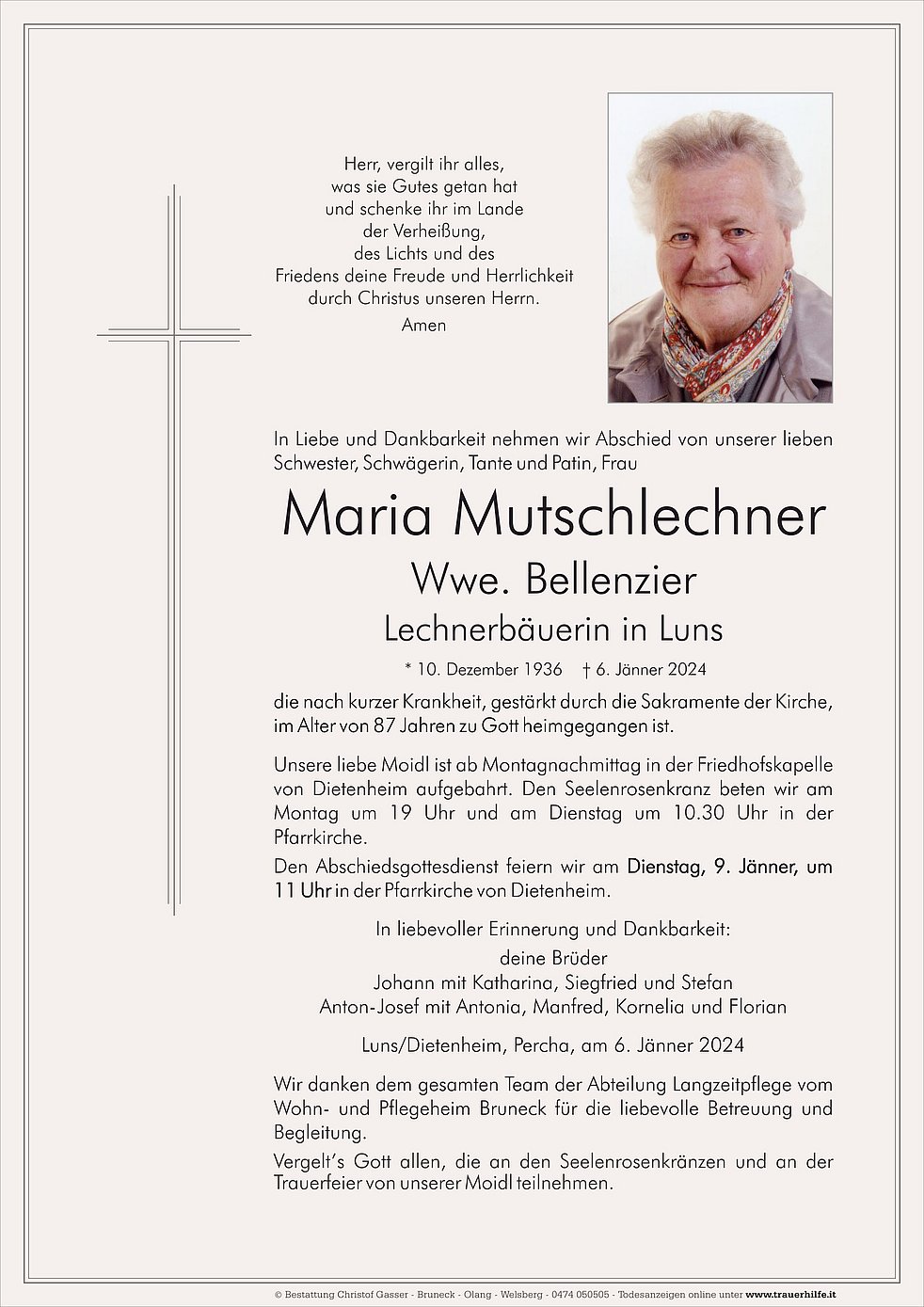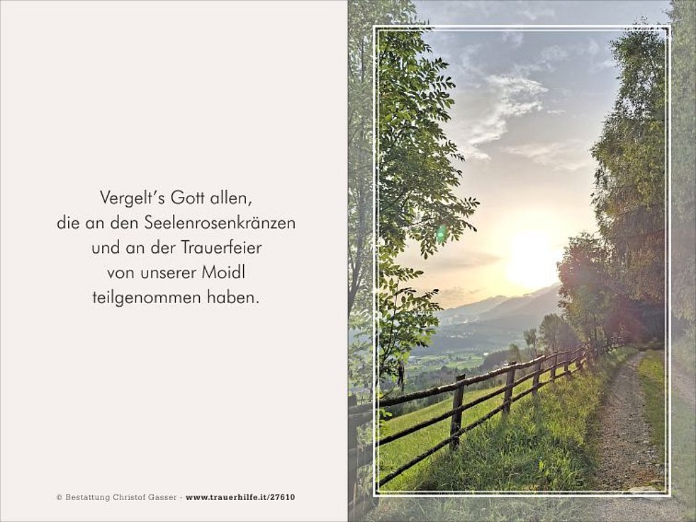 Vergelt’s Gott allen, die an den Seelenrosenkränzen und an der Trauerfeier von unserer Moidl teilnehmen.