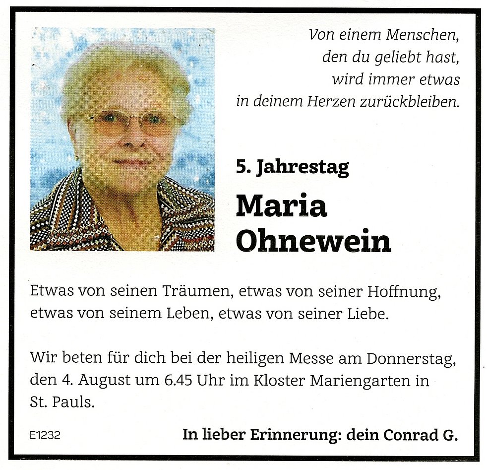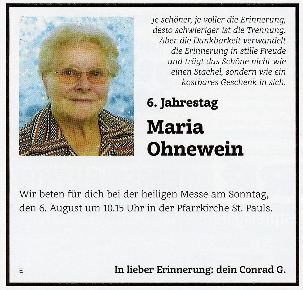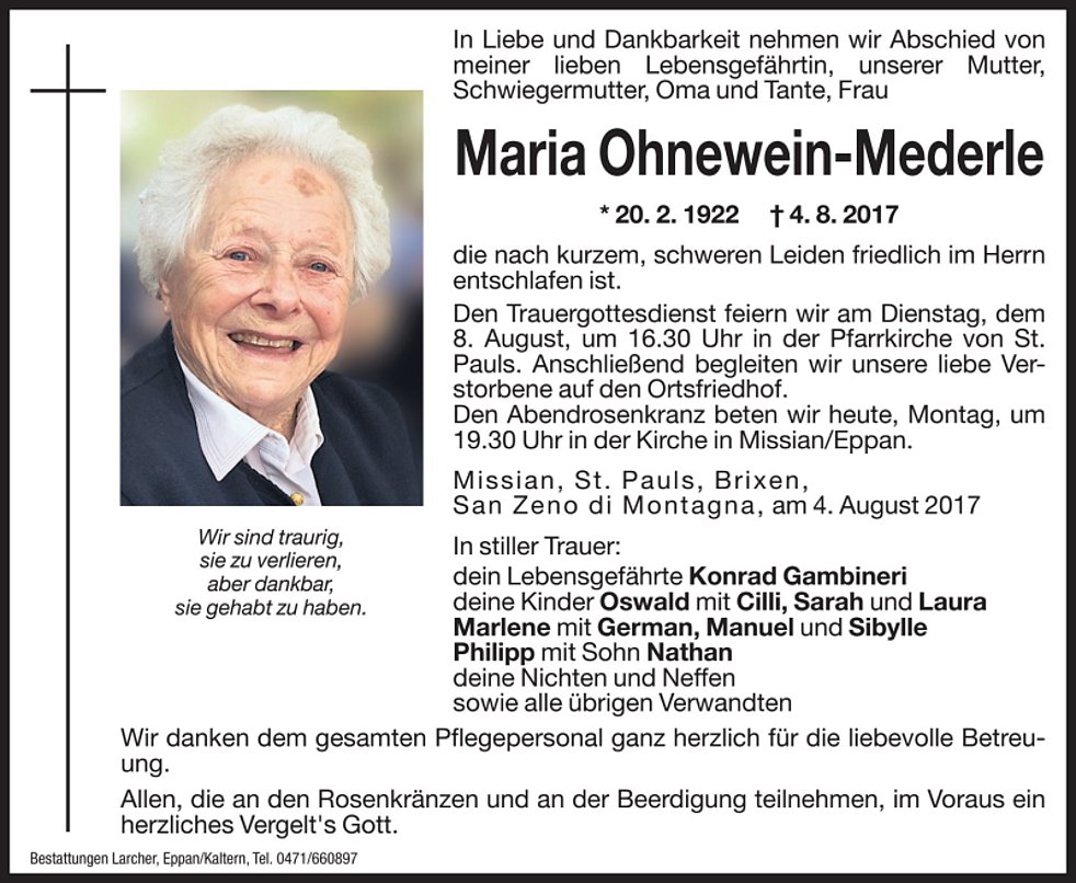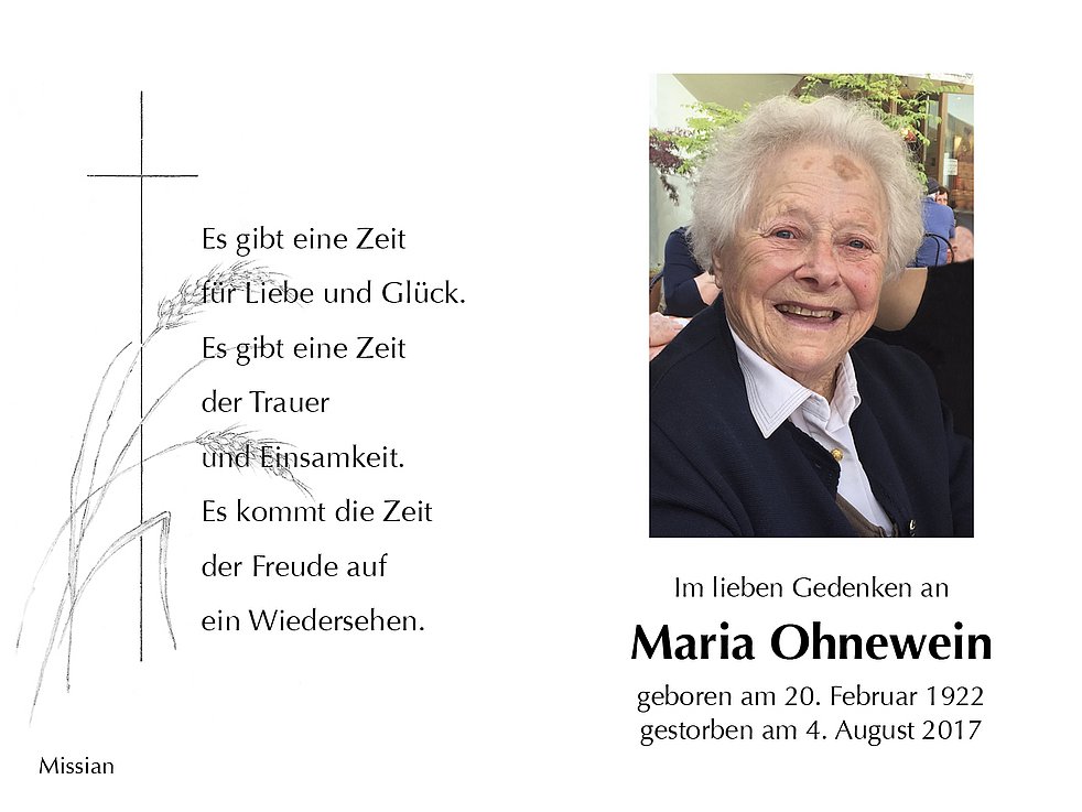 Den Trauergottesdienst feiern wir am Dienstag, dem 8. August um 16.30 Uhr in der Pfarrkirche von St. Pauls. Anschließend begleiten wir unsere liebe Verstorbene auf den Ortsfriedhof.