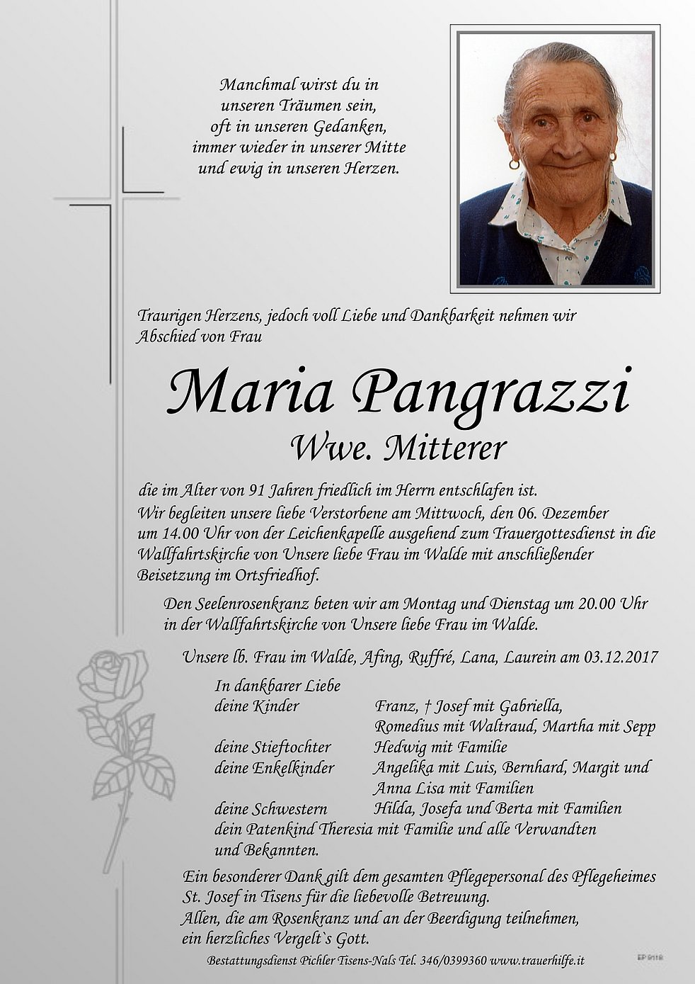 Aufrichtige Anteilnahme Fam.Frei Wittmair Naraun