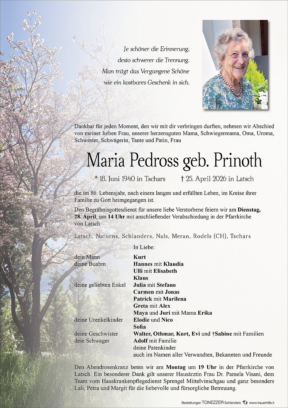 * 18. Juni 1940 in Tschars † 25. April 2026 in Latsch