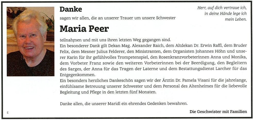 Allen, die an den Rosenkränzen und an der Beerdigung teilnehmen, im Voraus ein herzliches Vergelt´s Gott.