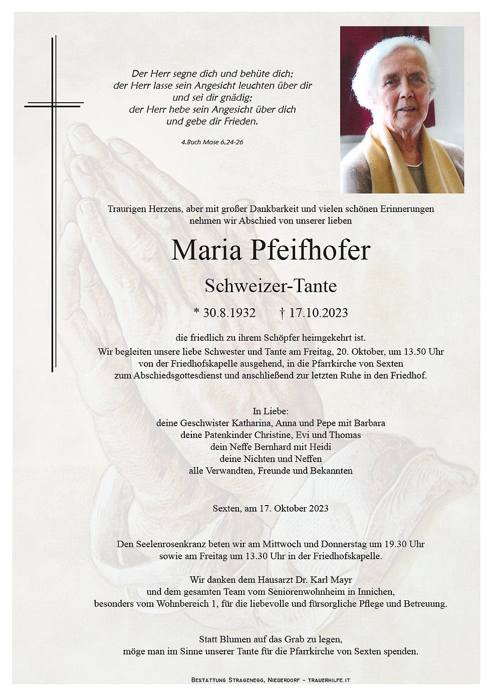 Begräbnisgottesdienst: 20.10. - 14:00 Uhr Sexten
