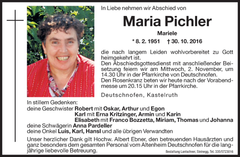 am Mittwoch, 2. November, um 14.30 Uhr in der Pfarrkirche von Deutschnofen.
