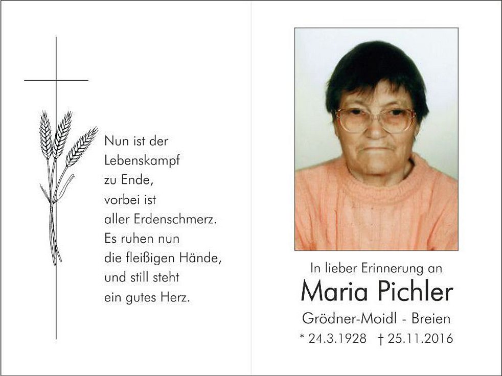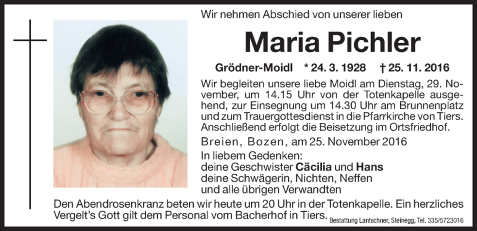 Wir begleiten unsere liebe Moidl am Dienstag, 29. November, um 14.15 Uhr
