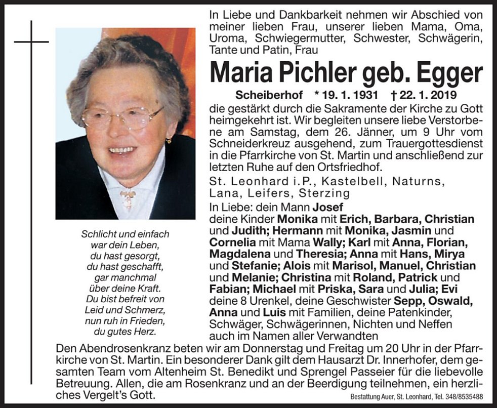 Ein besonderer Dank gilt dem Hausarzt Dr. Innerhofer, dem gesamten Team vom Altenheim St. Benedikt und Sprengel Passeier für die liebevolle Betreuung.