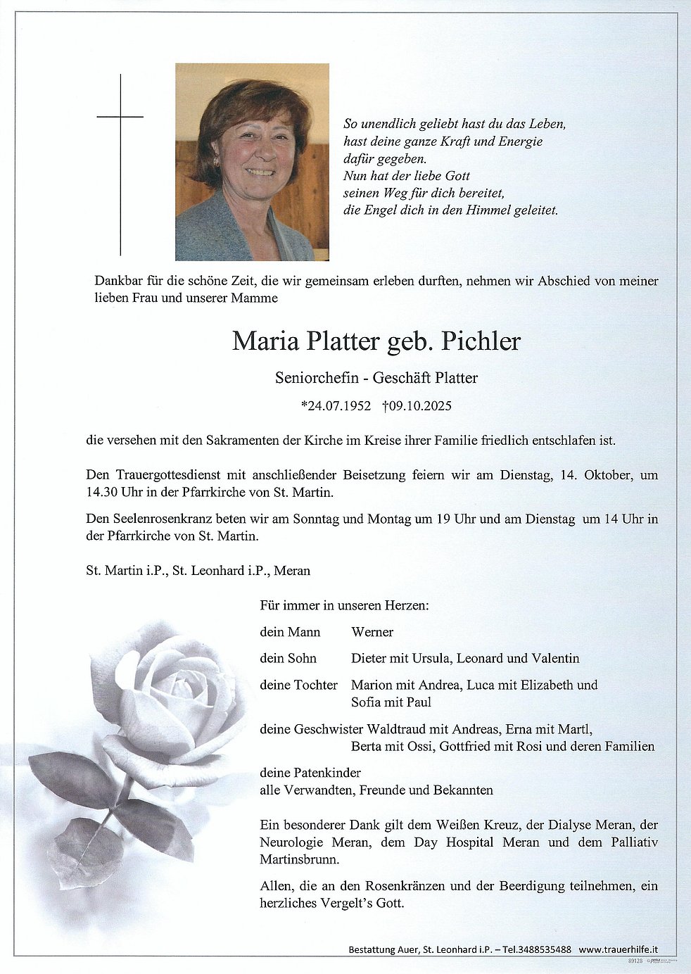 Allen, die an den Rosenkränzen und der Beerdigung teilnehmen, ein herzliches Vergelt’s Gott.