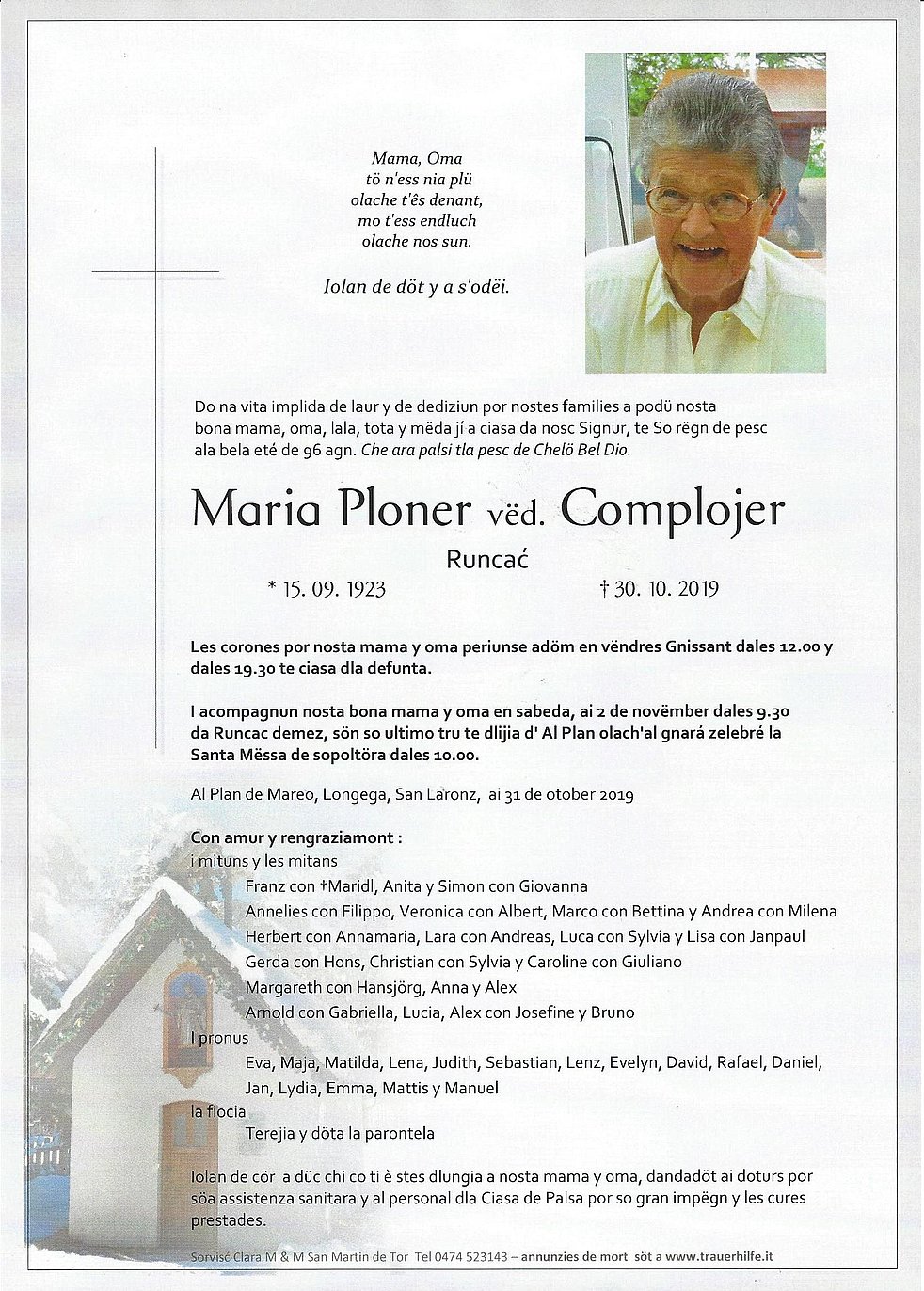 Wir begleiten unsere gute liebevolle Mutter und Oma am Samstag, dem 2. November um 9.30 Uhr vom Trauerhaus ausgehend zum Trauergottesdienst um 10.00 Uhr in die Pfarrkirche von St. Vigil in Enneberg.
