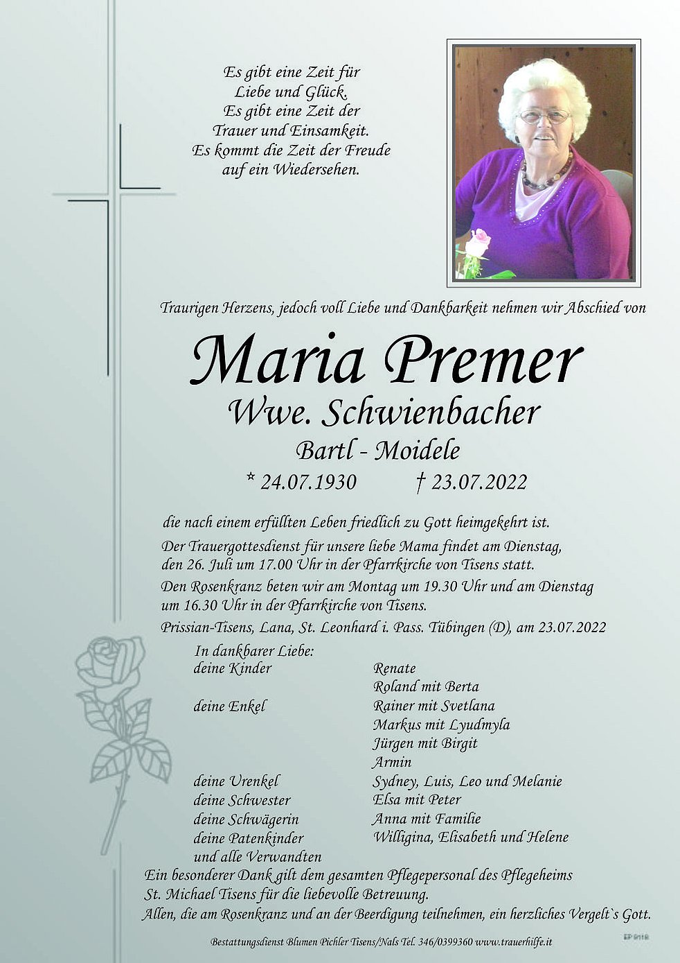 Der Trauergottesdienst für unsere liebe Mama findet am Dienstag,