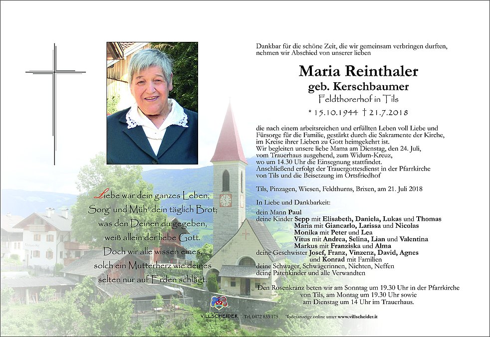 Den Rosenkranz beten wir am Sonntag um 19.30 Uhr in der Pfarrkirche von Tils, am Montag um 19.30 Uhr sowie