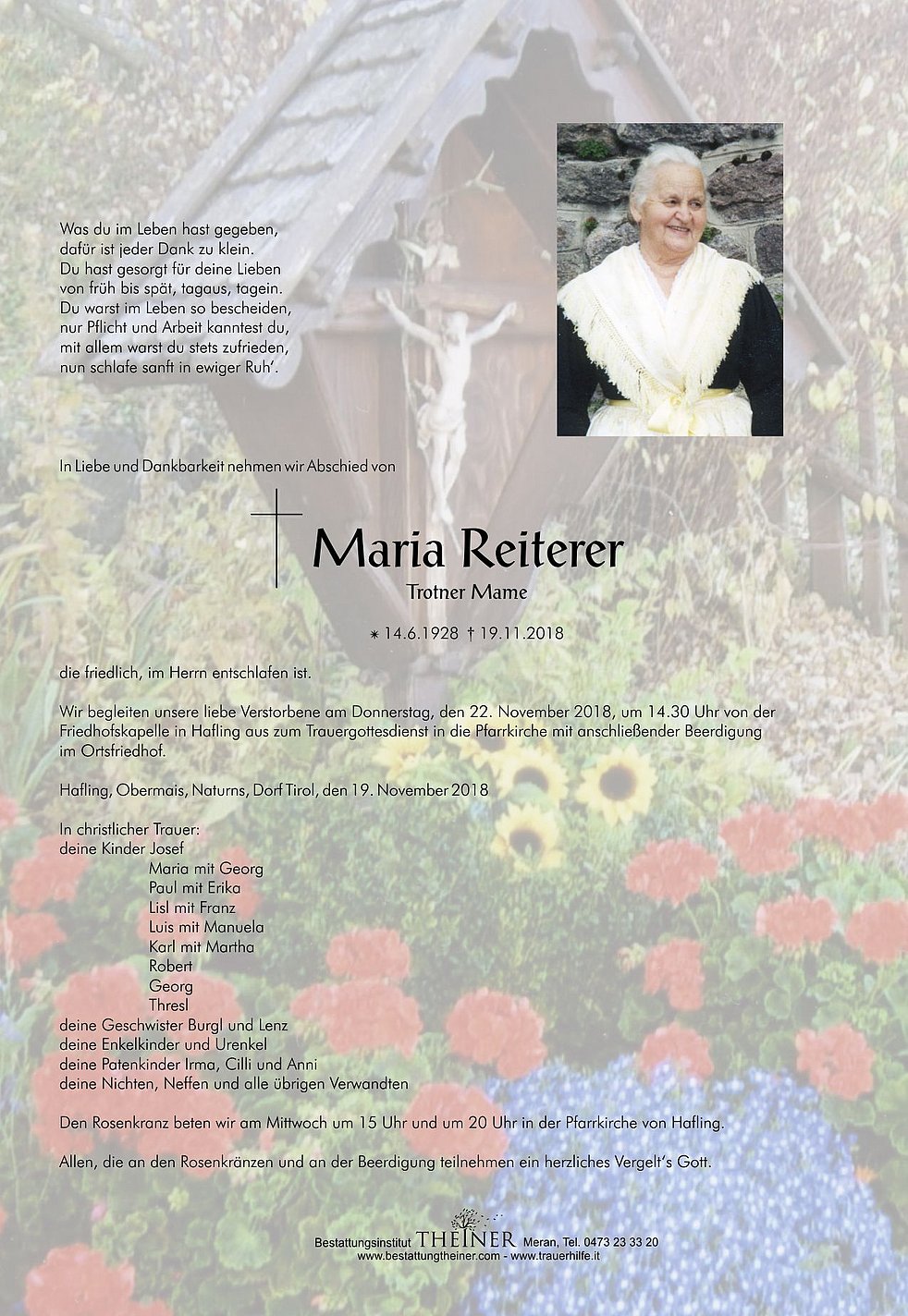 Wir begleiten unsere liebe Verstorbene am Donnerstag, den 22. November 2018, um 14.30 Uhr von der Friedhofskapelle in Hafling aus zum Trauergottesdienst in die Pfarrkirche mit anschließender Beerdigung im Ortsfriedhof.
