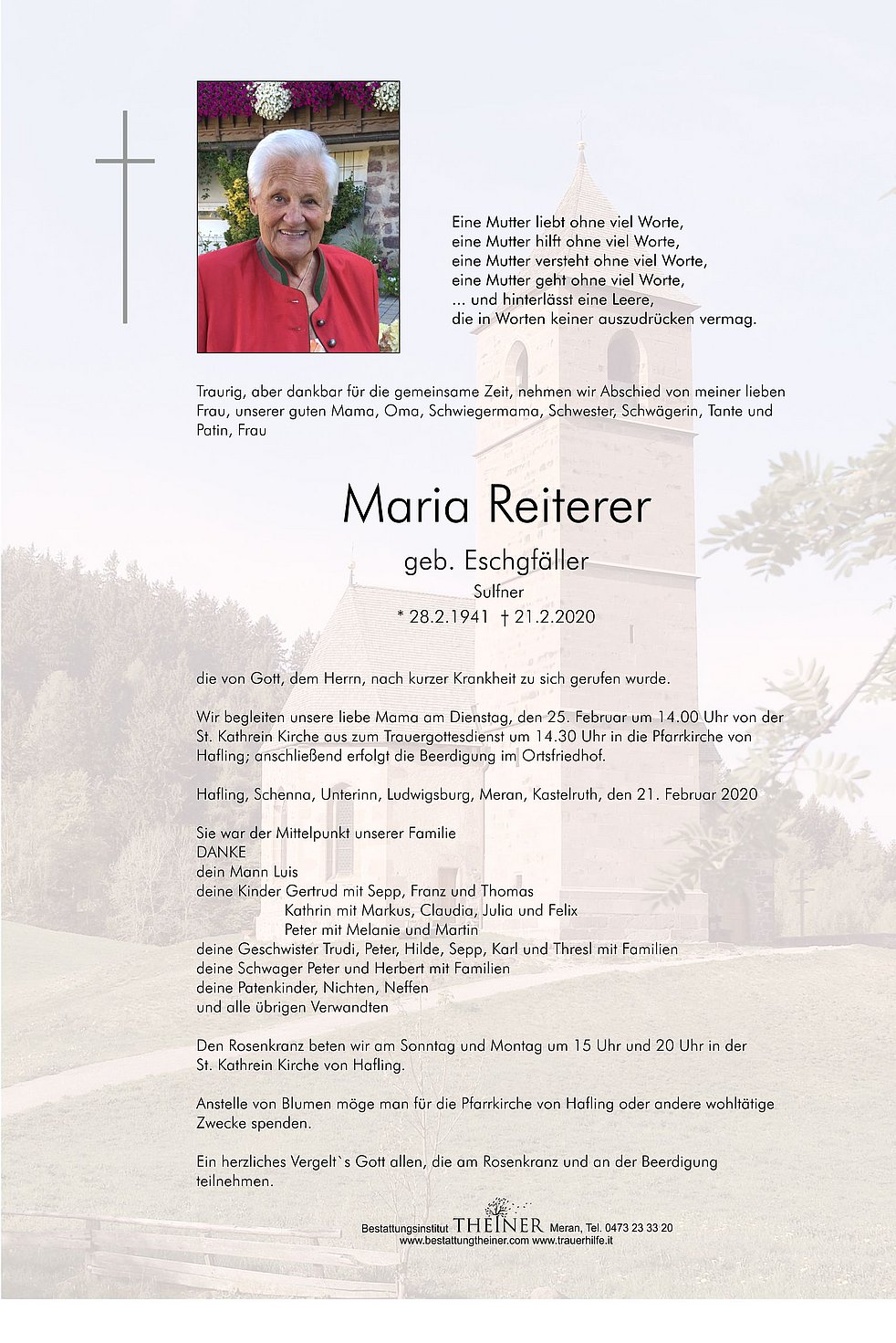 Anstelle von Blumen möge man für die Pfarrkirche von Hafling oder andere wohltätige Zwecke spenden.