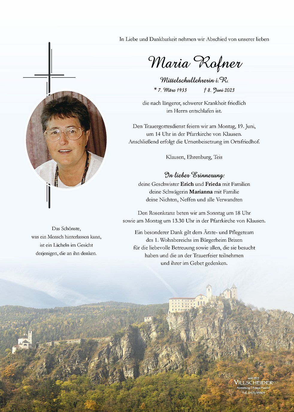 Trauerfeier: 19.06. - 14:00 Uhr Klausen