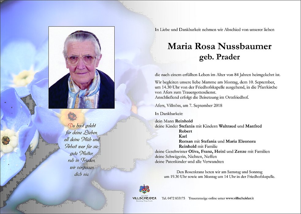 Wir begleiten unsere liebe Mamme am Montag, dem 10. September,