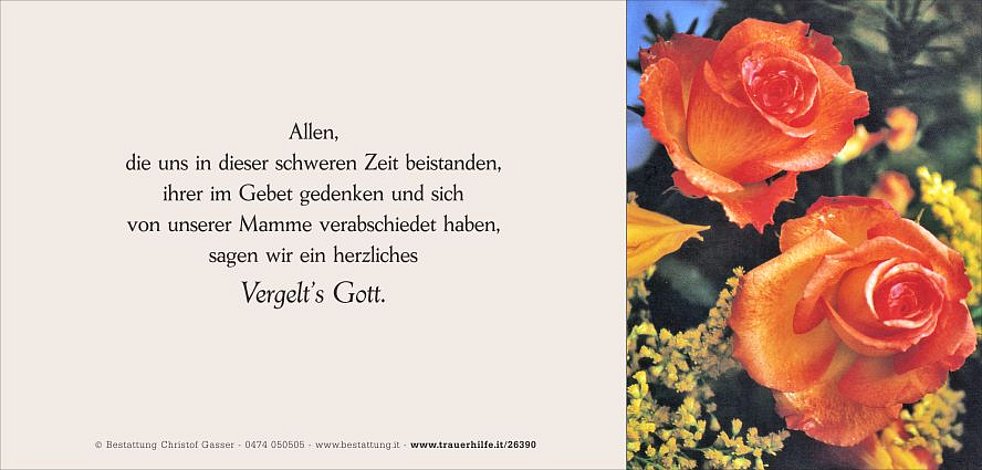 Wir bedanken uns beim Hausarzt Herrn Dr. Stefan Oberheinricher sowie bei den behandelnden Ärzten und dem Pflegepersonal am Krankenhaus Bruneck, besonders beim gesamten Team der Palliativmedizin.