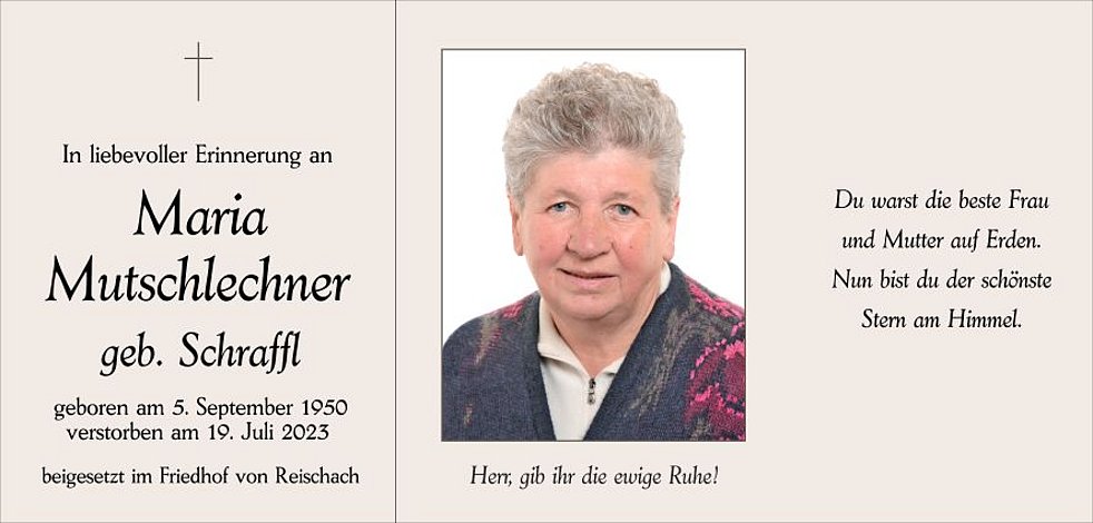 Den Abschiedsgottesdienst feiern wir am Samstag, dem 22. Juli, um 14 Uhr in der Pfarrkirche von Reischach. Anschließend übergeben wir sie der geweihten Erde.