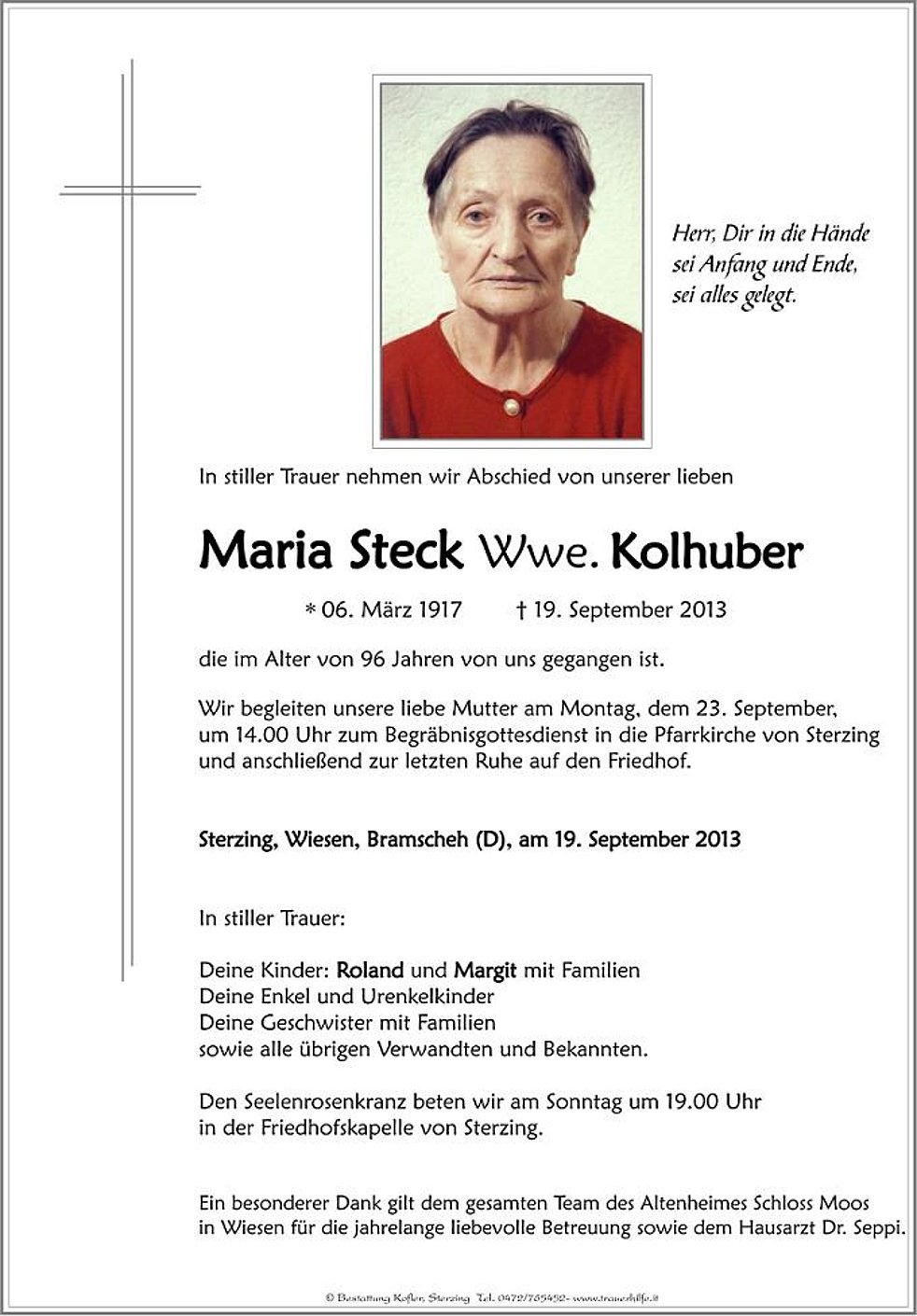 um 14.00 Uhr zum Begräbnisgottesdienst in die Pfarrkirche von Sterzing