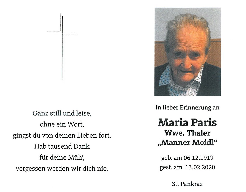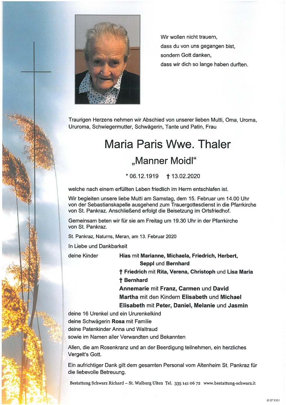 Begräbnisgottesdienst: 15.02. - 14:00 Uhr St. Pankraz