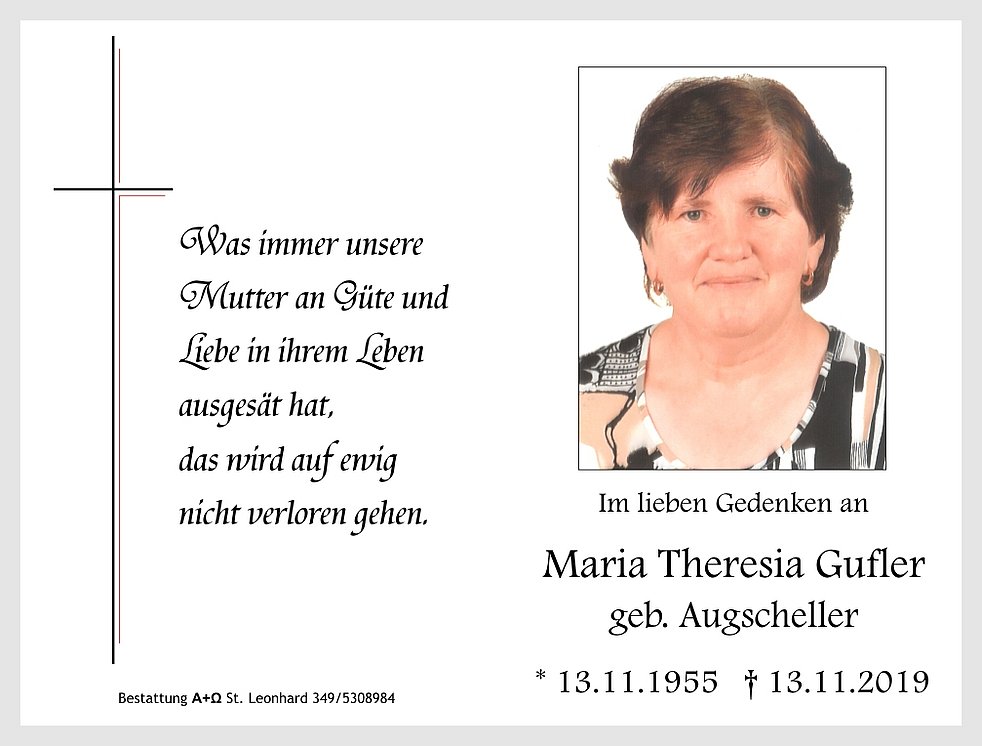 die plötzlich und unerwartet zu Gott heimgekehrt ist. Wir begleiten unsere liebe Mutter