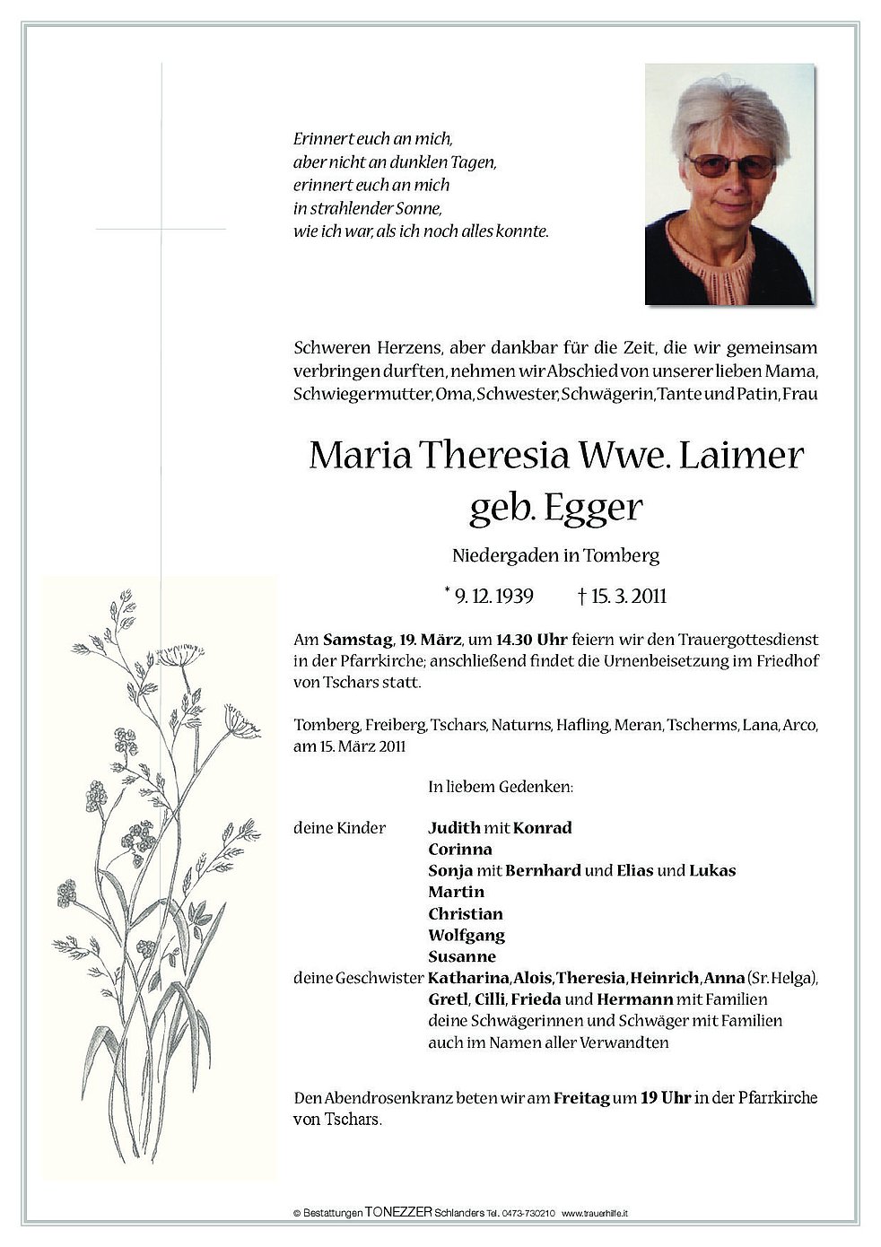 Am Samstag, 19. März, um 14.30 Uhr feiern wir den Trauergottesdienst in der Pfarrkirche; anschließend findet die Urnenbeisetzung im Friedhof von Tschars statt.