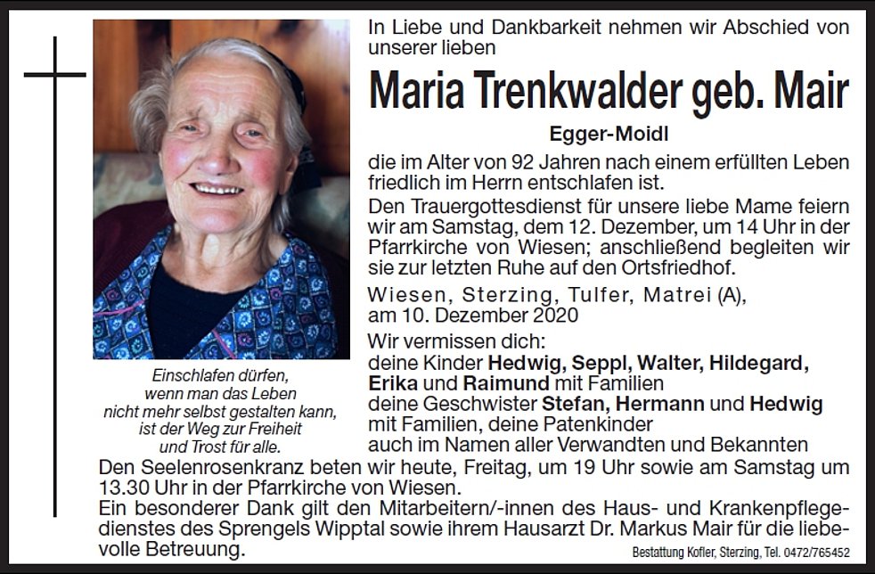 Maria Trenkwalder geb. Mair