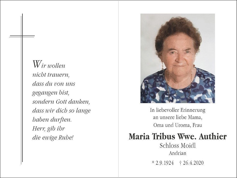 Unsere liebe Mama wird im engsten Familienkreis beigesetzt, den Trauergottesdienst feiern wir zu einem späteren Zeitpunkt!