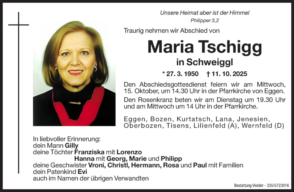 Den Abschiedsgottesdienst feiern wir am Mittwoch, 15. Oktober, um 14.30 Uhr in der Pfarrkirche von Eggen.
