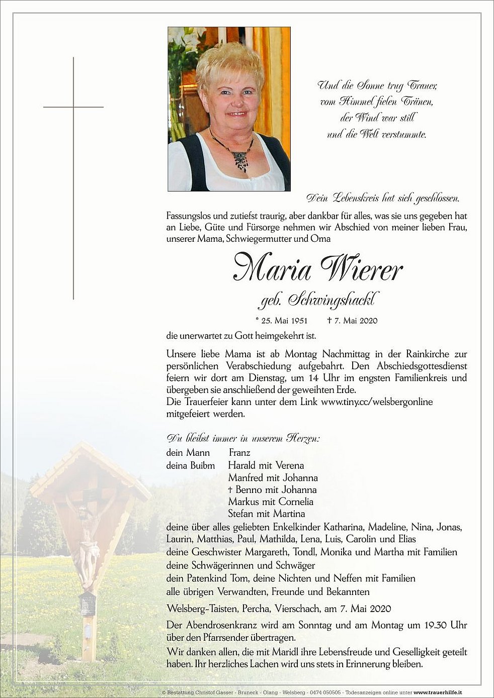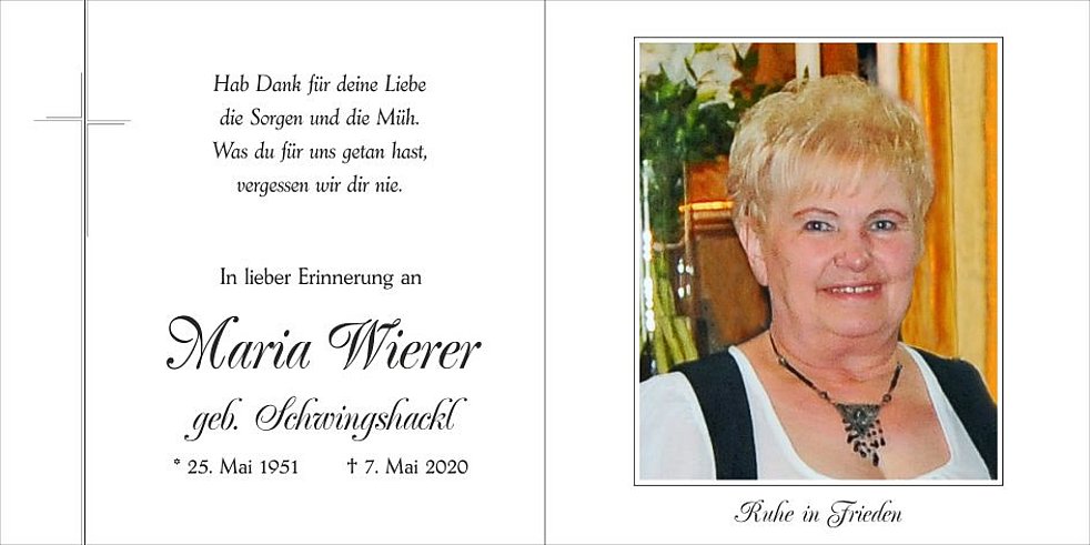 Wir danken allen, die mit Maridl ihre Lebensfreude und Geselligkeit geteilt haben. Ihr herzliches Lachen wird uns stets in Erinnerung bleiben.