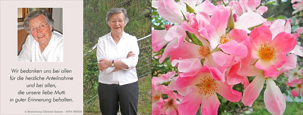 Wir sind dankbar für die vielen schönen Jahre, in denen du uns mit Liebe und Fürsorge umsorgt hast. Dein Wirken und deine Demut sind uns stets ein Vorbild.